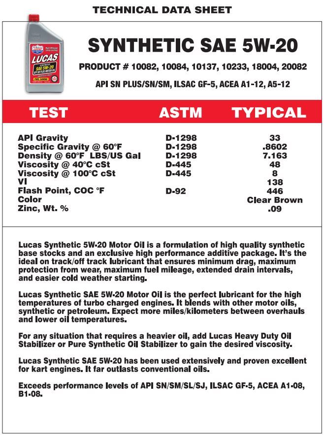 - Lucas motorolie 5w20 fully synthetic 5 liters (article number 1 liter 10082)